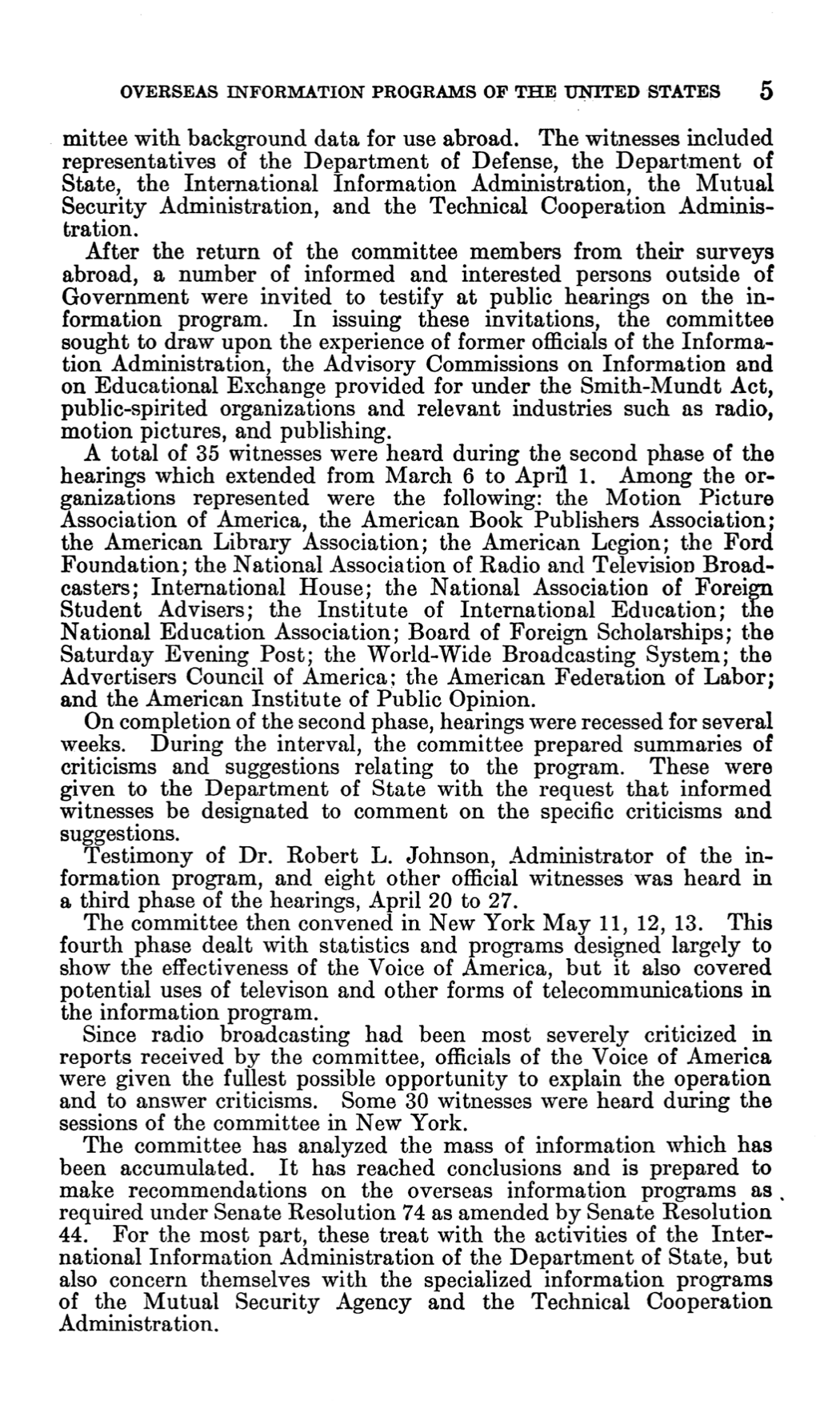Overseas Information Programs of the United States Senate Committee on Foreign Relations Report June 15 1953 Page 5